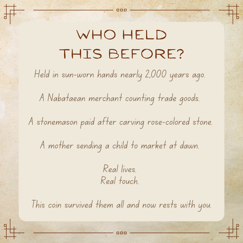 Each coin likely passed through merchant hands: exchanged for spices, textiles, or water in cities carved from stone. This is everyday money from a civilization built on movement and trade.