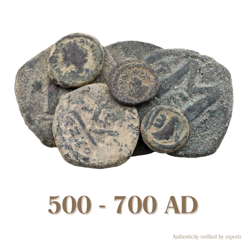 Struck between roughly 500 and 700 AD, these coins reflect a world balancing Roman tradition and Byzantine identity.